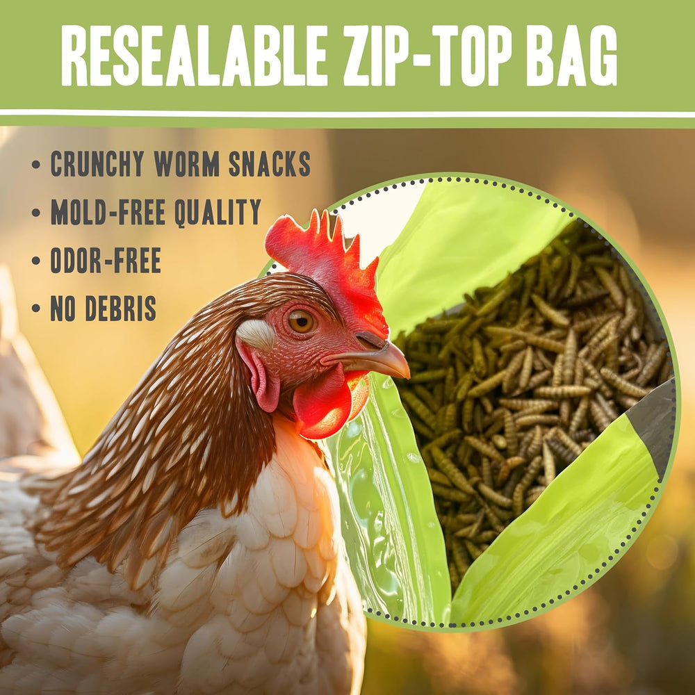 • Sustainable Non-GMO Protein Source. Raised on a natural, non-GMO diet, these larvae provide year-round immune support and vitality. Their eco-friendly production keeps your flock healthy without compromising sustainability.
