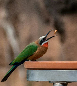 For chickens and birds, a few larvae can be scattered on top of their regular feed or offered by hand.
