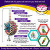 Two bamboo baskets connected with plastic links and filled with colorful crinkle shred. Decorated with vine stars, plastic chain, wood beads, and a bell. Hide some treats in the basket for additional foraging.