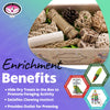 Natural Components & Textures - A rich mix of natural shreddable, chewable, and foraging materials—including grasses, pods, husks, wood, vine shapes, and sola—designed to encourage pulling, preening, chewing, and treat-seeking behavior.
