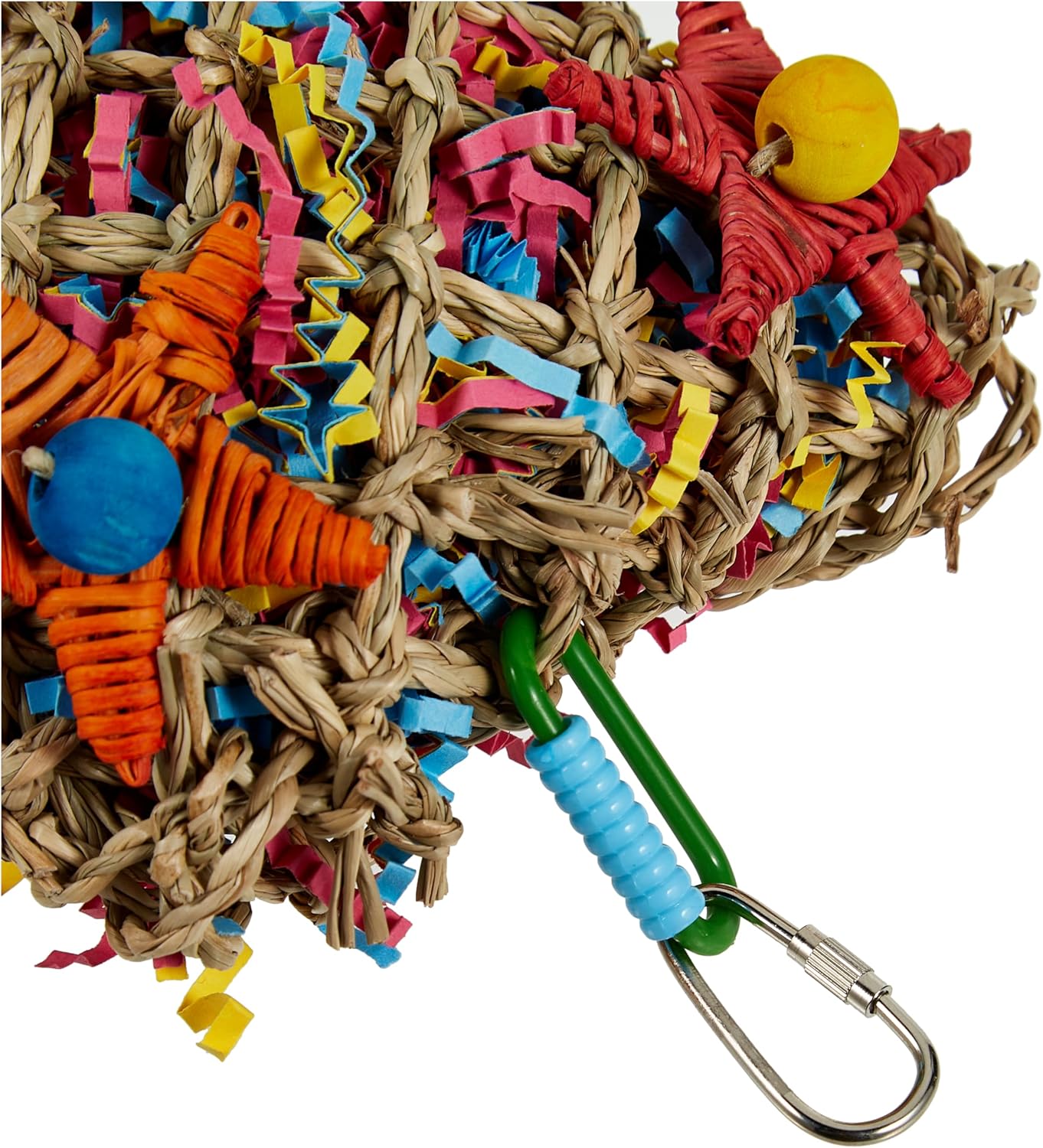 Our “Pickin’ Pocket” toy is a must have for your rabbit, rat, chinchilla or similar pet. Crafted with a seagrass mat that’s been secured with hard plastic clips and stuffed with brightly colored paper crinkle.