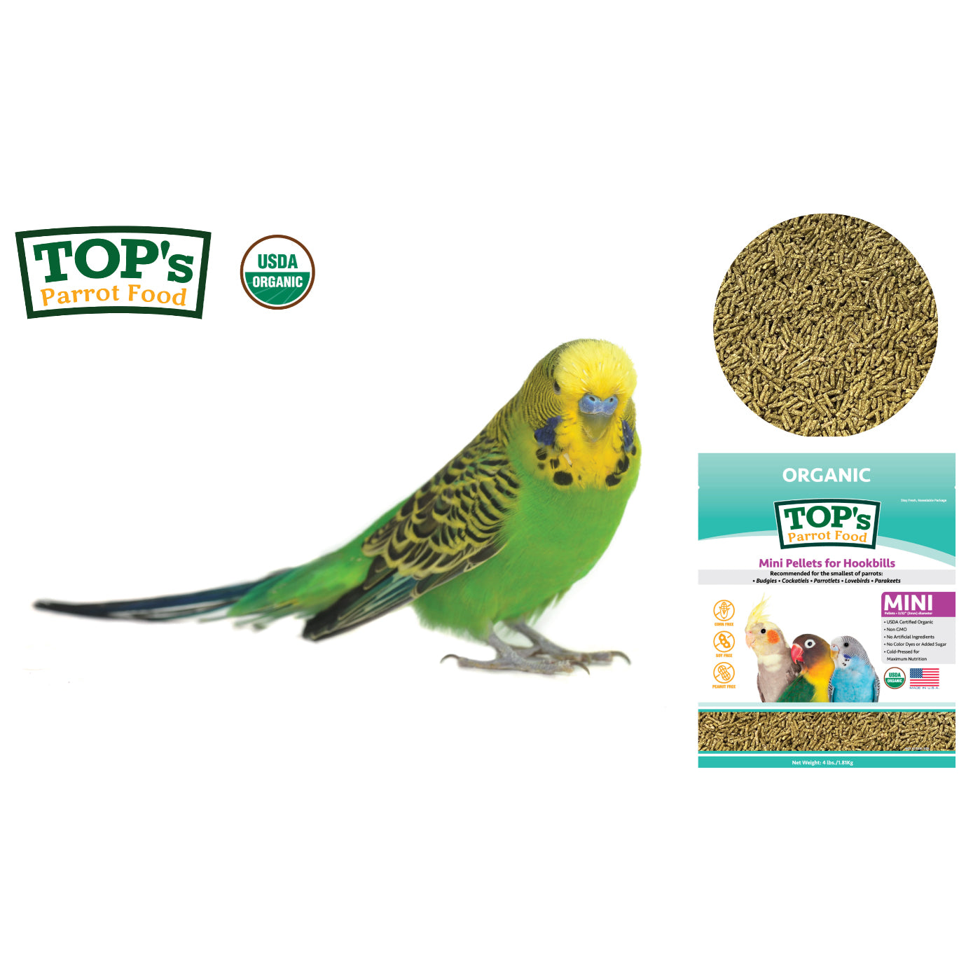 USDA Organic Certified Nutrition for Small Birds – TOP’s Mini Pellets for Hookbills are made from 100% organic, non-GMO ingredients sourced from the United States. Cold-pressed to preserve natural nutrients, these tiny 3/32" pellets provide essential vitamins, minerals, and amino acids for vibrant health and energy.